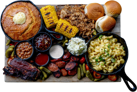 (Our Version Of A Redneck Charcuterie) House-smoked Ribs, Pulled Pork And Brisket Links, White Cheddar Mac, Baked Beans, Grilled Corn On The Cob, Vinegar Slaw, Bacon Jam, Ole Red Bar-b-que Sauce, Brioche Dinner Rolls, House-made Cornbread (Serves 2-3)